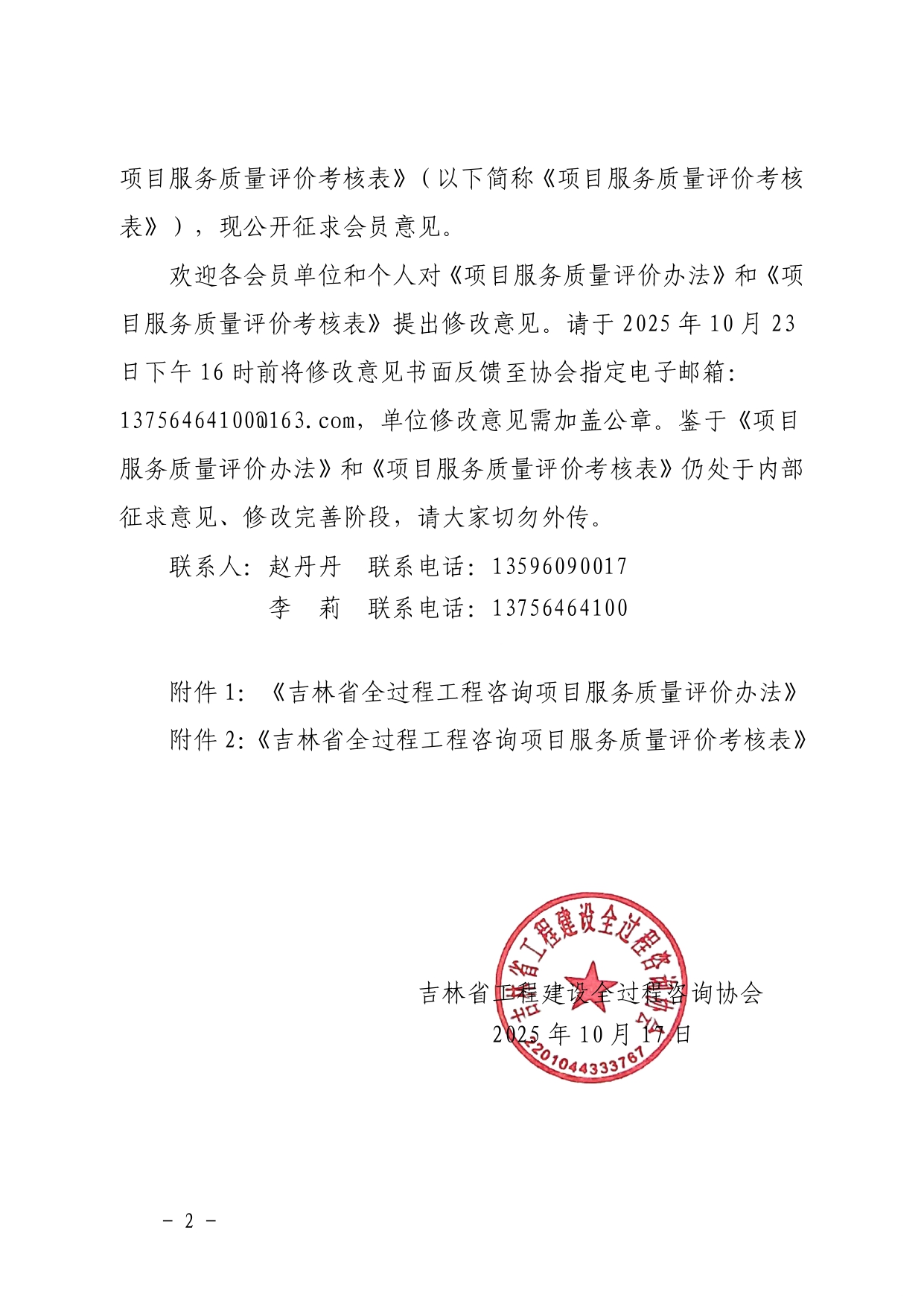 关于征求《吉林省全过程工程咨询项目服务质量评价办法》意见的通知