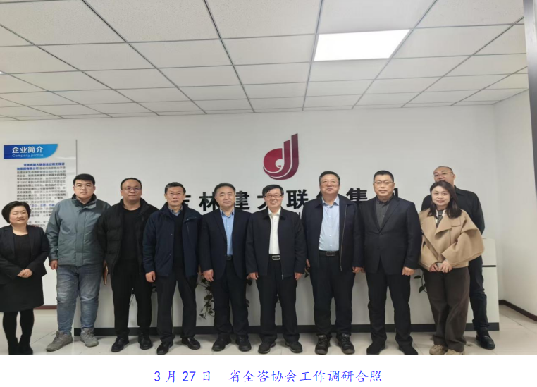 2025年3月27日,为推动全省工程建设全过程咨询政策标准体系建设,按照吉林省工程建设全过程咨询协会(以下简称省全咨协会)“大调研、大走访、大服务”活动安排,省全咨协会理事长孙贵生、副理事长兼秘书长谭敬胜、长春建业集团总经理陈辉等有关会员企业负责人,深入吉林省建大联创工程建设全过程咨询集团公司(以下简称吉林建大联创集团)开展工作调研,并召开全咨服务导则编制和招标工作座谈会。吉林建大联创集团董事长谷秀惠,总经理孙兆银参加调研活动和座谈会。